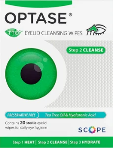 These wipes are preservative-free and effectively remove debris and excess oil for daily eyelid hygiene. Infused with tea tree oil, camomile, hyaluronic acid, and aloe vera to soothe and moisturize dry, sore eyes.